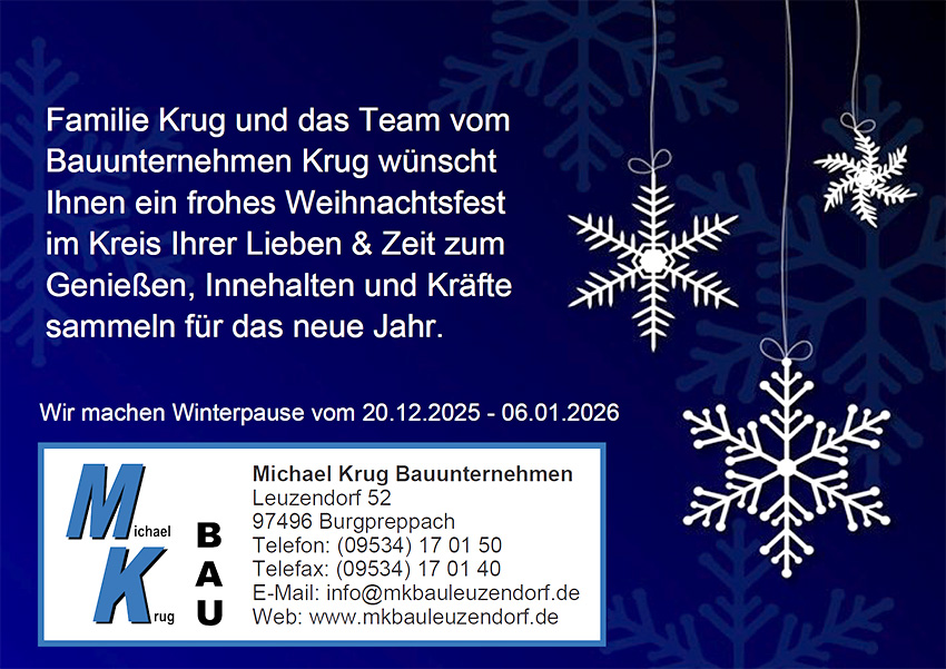 Schön, dass Sie sich für unser Unternehmen interessieren. Das Bauunternehmen Krug befindet sich in den unterfränkischen Hassbergen im Norden Bayerns. Als junges und dynamisches Unternehmen sind wir Ihr kompetenter und zuverlässiger Ansprechpartner für alle Neu- und Umbauarbeiten.